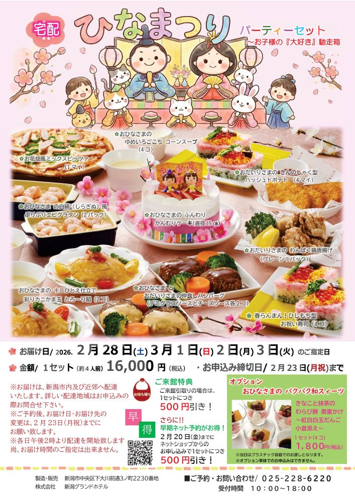 2月20日までのお申し込みで500円引き! 2026ひなまつりパーティーセット