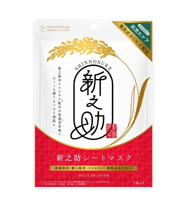新潟県が7年かけて開発したブランド米「新之助」から抽出した<保湿成分>と話題の整肌成分<ツボクサ葉/茎エキス(保湿)>が配合されたシートマスク。新之助米コメエキス配合の浸透美容液で、ふっくら潤うもっちり美肌に。 【特徴】