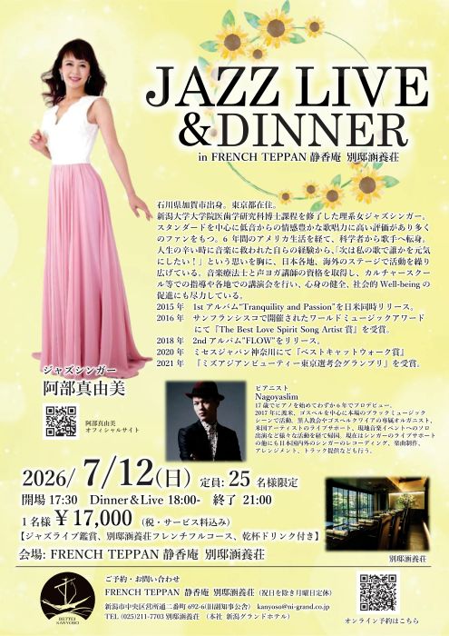 阿部真由美JAZZ LIVE&DINNER in別邸涵養荘